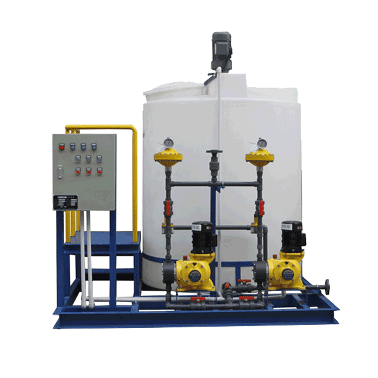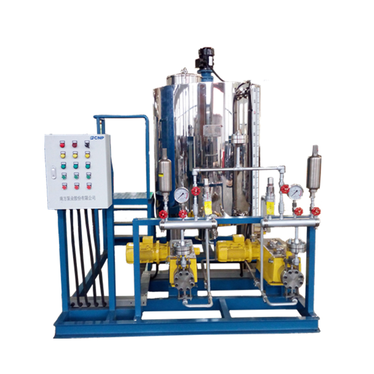 成套加藥裝置和專項成套加藥裝置有多種規格型號,產品包含一罐一泵,一罐兩泵,兩罐兩泵,兩罐三泵,三罐三泵及多罐多泵。系統所使用的配置是根據計量泵的數量和出口來定的,用戶可以根據工藝需要進行選擇,也可依據用戶的特殊需要來設計和生產的非定型產品。